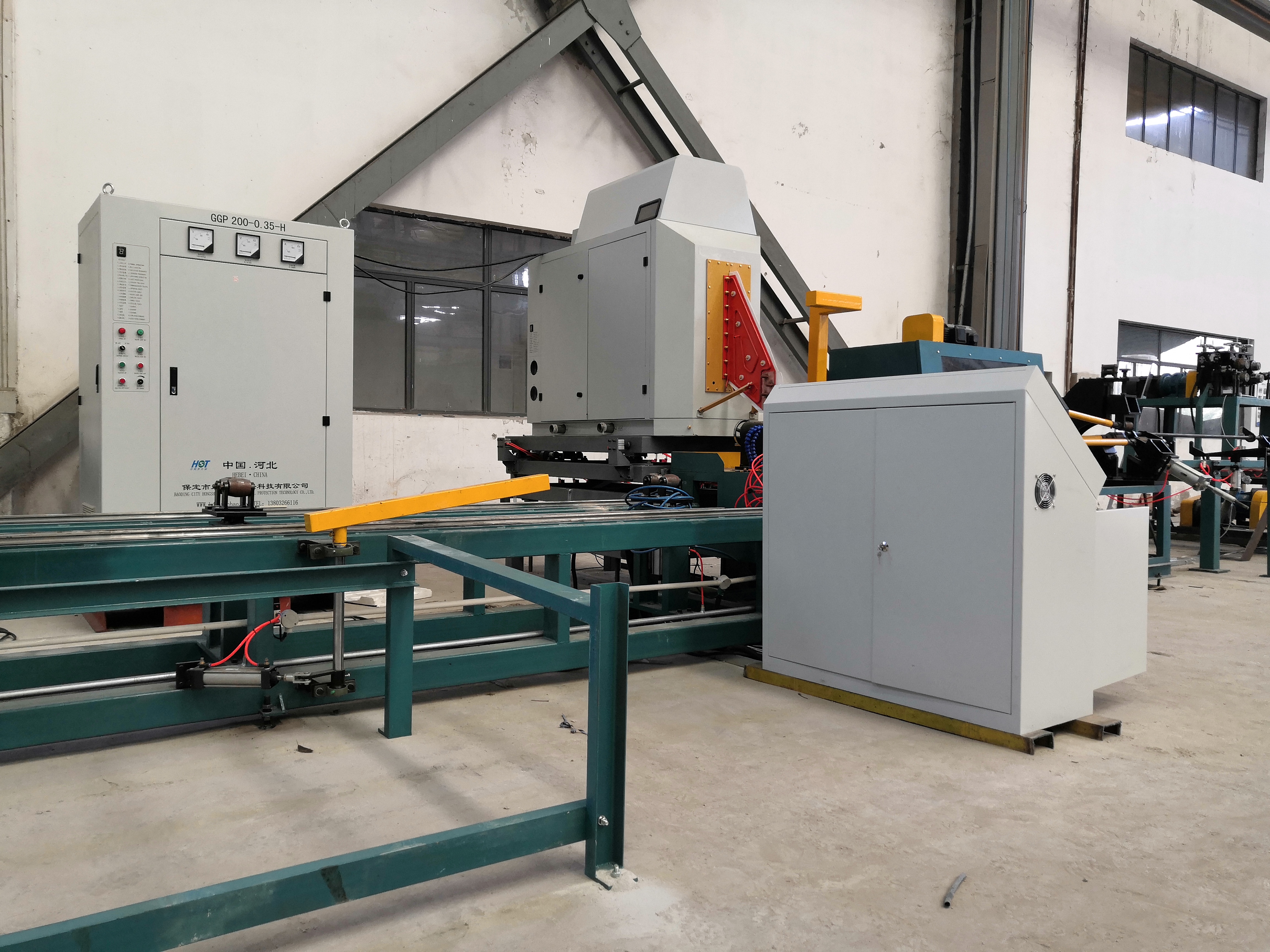 保定市宏順泰環??萍加邢薰緞摿⒂?989年,位于河北省的保定市競秀工業開發區,毗鄰北京,天津,交通運輸十分便捷,地理得天獨厚。 本公司是生產高頻(激光)螺旋翅片管焊接設備、高頻(中頻)縱向鰭片管焊接設備、H型翅片管中頻焊接設備、高頻焊管成套設備以及新研發的高頻(激光)焊接橢圓形鋼管翅片管焊接設備的專業廠家。目前,公司設有翅片管焊接設備制造部和翅片管焊接制造部。翅片管焊接制造部有高頻翅片管焊接生產線2條,年產翅片管2000噸;激光焊接橢圓形鋼管翅片管生產線3條,高頻焊接橢圓形鋼管翅片管生產線2條,年產橢圓形鋼管翅片管1000噸。 本公司取眾家之優點,專業制造高頻焊片管成套設備,高頻焊鰭片管成套設備,固態高頻焊管設備,電子管高頻設備、高頻設備空冷器、余熱回收裝置、高頻焊管生產線、電腦數控飛鋸、磨齒機等系列設備。其中高頻焊翅片機組和高頻焊鰭片管成套設備是我們公司自主研發的產品。我公司還可以根據用戶特殊需要,設計制作特殊要求的機械設備,來滿足用戶的使用要求。我公司系列產品得到國內新老客戶的一致好評。 “宏順泰”將以先進技術,科學實用、質量過硬的產品和周到滿意的服務,回報公司的新老用戶?!昂觏樚比w員工竭誠歡迎國內外廣大用戶光臨、合作!